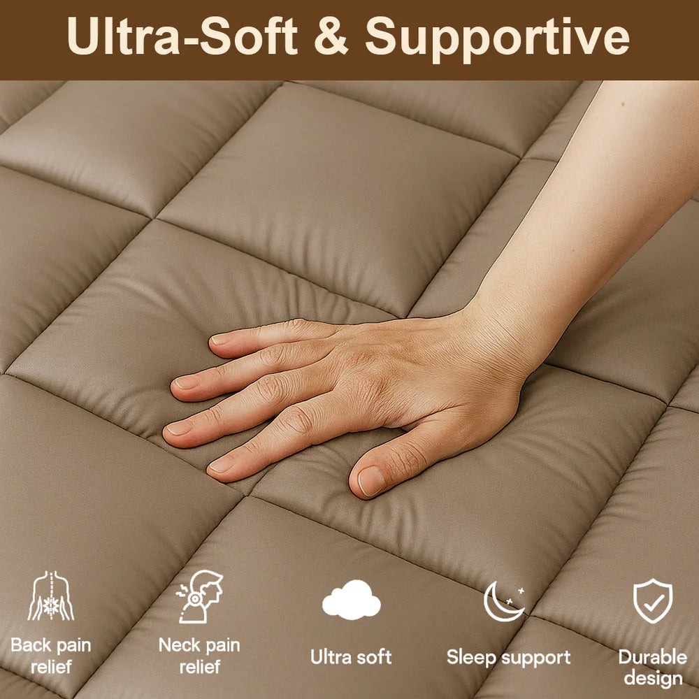 Most people don’t realize their discomfort stems from an unbalanced sleep surface. Our Cocoa Cloud Mattress Topper solves it all adding plush softness, orthopedic support, and 360° breathability for cooler, pain-free nights. Whether your mattress feels too firm, traps heat, or disturbs you with every partner movement, our topper transforms it into a luxury sleep haven all without the cost of replacing your bed. Plus, it's hypoallergenic, washable, and perfect for allergy-sensitive sleepers or portable comfort on the go.